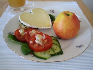 Odafigyelve a reggelire meg jött a főtt tojás sajt darabokkal és paprika csíkokkal. Laktató és finom. És egészséges.