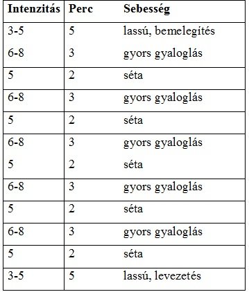 Mivel most még a 20 perc a cél, ezért a 5-3-2-3-2-ig végezd, és az utolsó 5 percet. PErsze tovább csinálhatod, ha jól esik, és megy 🙂 Jövő héten emeld meg egyszer 3/2-vel és így tovább.