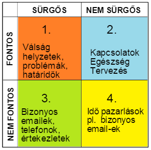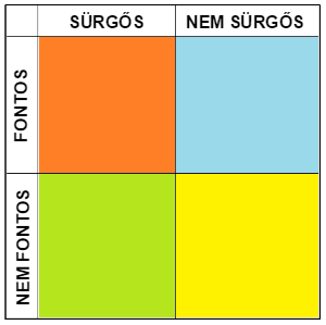 - nem sürgős, de fontos – ezek a személyes dolgok, a barátokkal való találkák, a hobbid, az egészségedre fordított idő