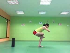 Földön ülve nyújtsd ki a lábaid terpeszbe. Lábujjak felfelé mutatnak. Hajolj előre csípőből egyenes háttal. Tartsd a pozíciót 10 mp-ig, majd a lábaiddal végezz közelítő feszítést, mintha össze akarnád zárni, de ténylegesen ne mozduljanak. 4-5 mp múlva levegő kifújására a feszítést engedd el, és hajolj még jobban a lábaid közé. Ismételd meg 4-5-ször.