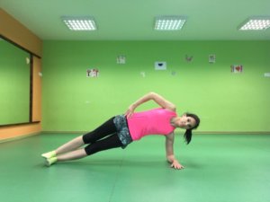 Végezz 4×10 mp egyenes plank és 2-2×8 mp oldalsó plank tartást. Mind a két esetben alhas megtartott, derekad nem feszül ívbe, fejed nem lóg. Comb és far izmai tónusban vannak. Fejtetővel nyújtózz felfelé. Ha rectus diastasisod van / volt – akkor a medencéd billentsd – személremcsontod a köldök felé irányít.