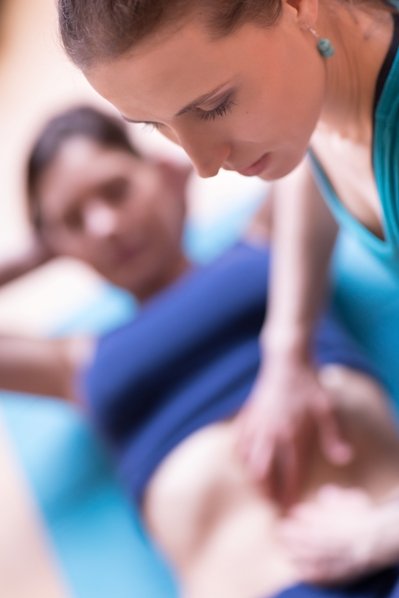 Hasizom regeneráló tornát keress, vagy ha már ismersz ilyen gyakorlatokat – ezekkel helyettesítsd a haspréseket. Nyugodtan tornázz egy alakformáló aerobic órán – de amíg a többiek szélesen guggolnak, te szűken, amíg ők haspréseket csinálnak, te a regeneráló gyakorlatokat, amíg ők nyújtott kézzel plankolnak, te alkar támaszban, letett térdekkel.